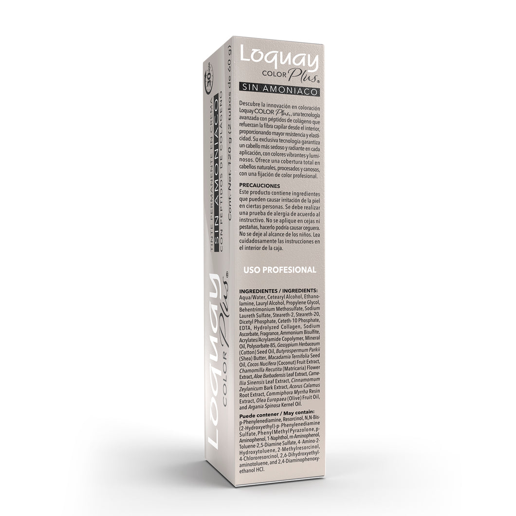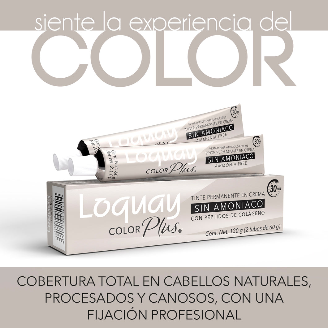 Descubre la innovación en coloración Loquay COLOR PLUS, una tecnología avanzada con péptidos de colágeno que refuerzan la fibra capilar desde el interior, proporcionando mayor resistencia y elasticidad. Su exclusiva tecnología garantiza un cabello más sedoso y radiante en cada aplicación, con colores vibrantes y luminosos y una fórmula libre de amoniaco. Ofrece una cobertura total en cabellos naturales, procesados y canosos, con una fijación de color profesional.